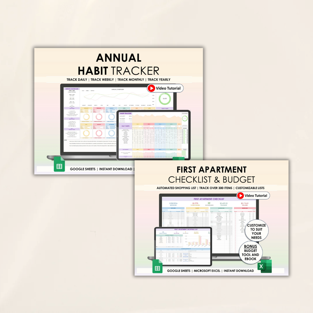 We’ve designed our spreadsheets with ease of use in mind, to help you stay organized and enhance your productivity. Compatible with both Google Sheets and Excel, our products are the perfect tools for anyone looking to streamline their tasks, improve quality of life or master their finances.