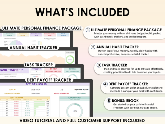 Financial Reset Bundle - Ultimate Personal Finance Package + Debt Payoff Tracker + Habit Tracker + Task Tracker for Excel & Google Sheets